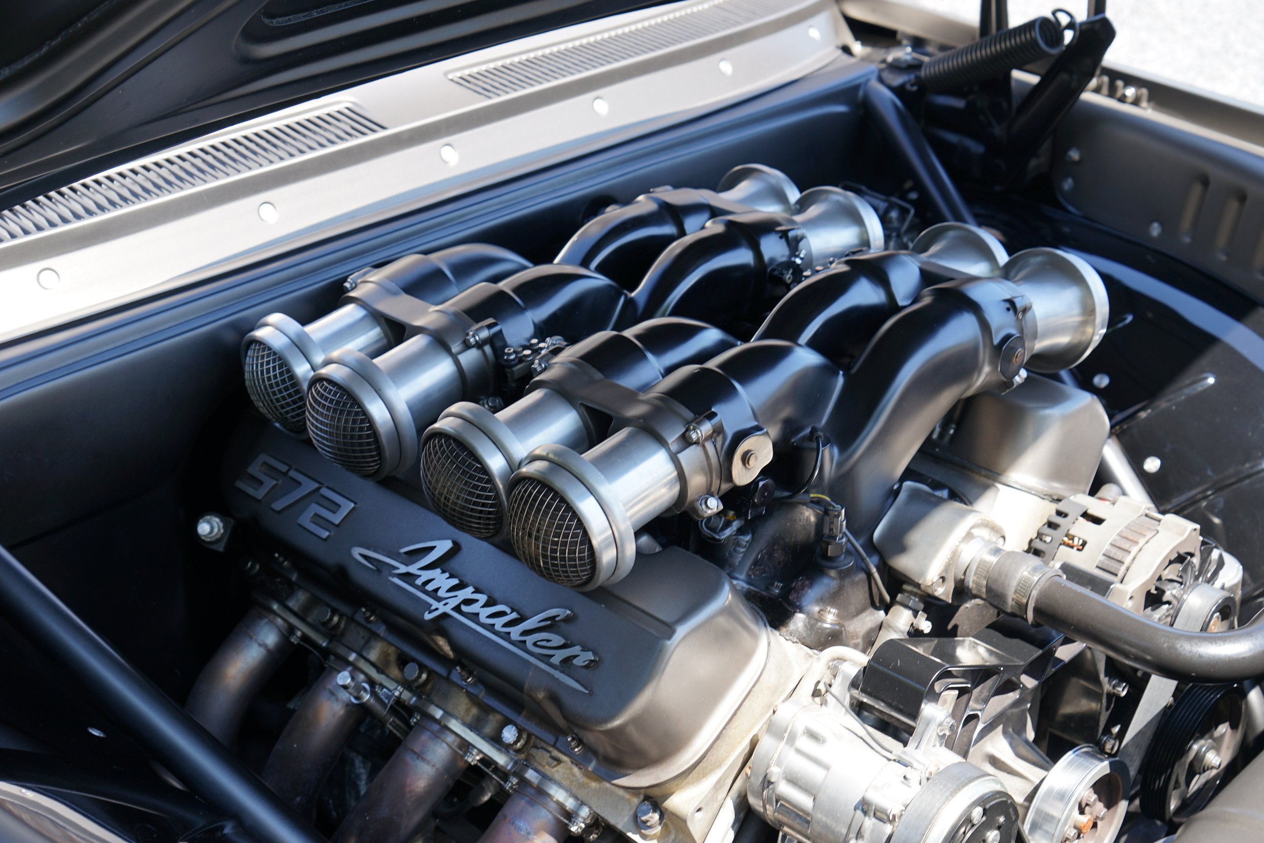 Purposeful Design featuring a sinister flat-black finish accented by exposed ARP fasteners and hand-formed bare aluminum interior panels.