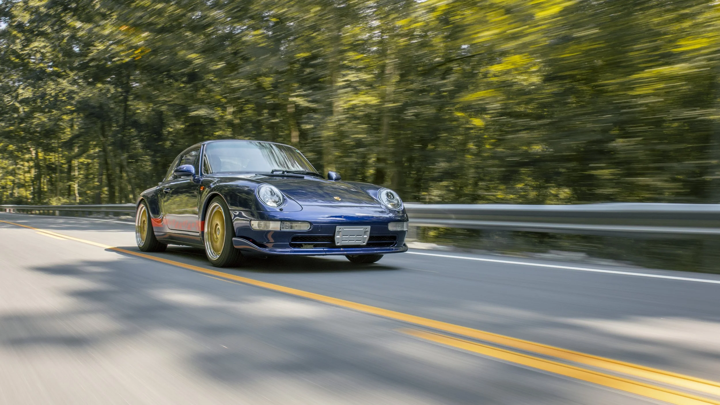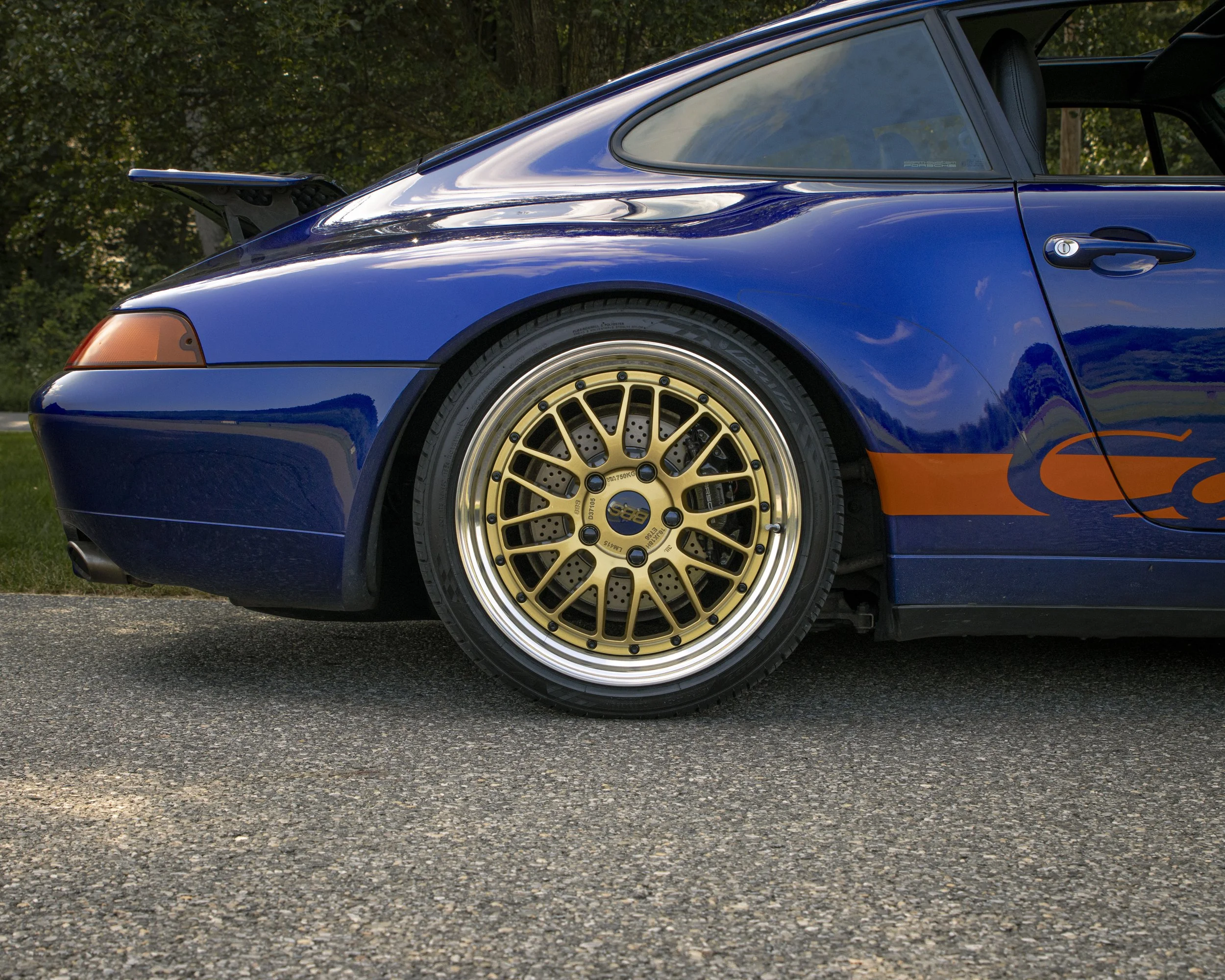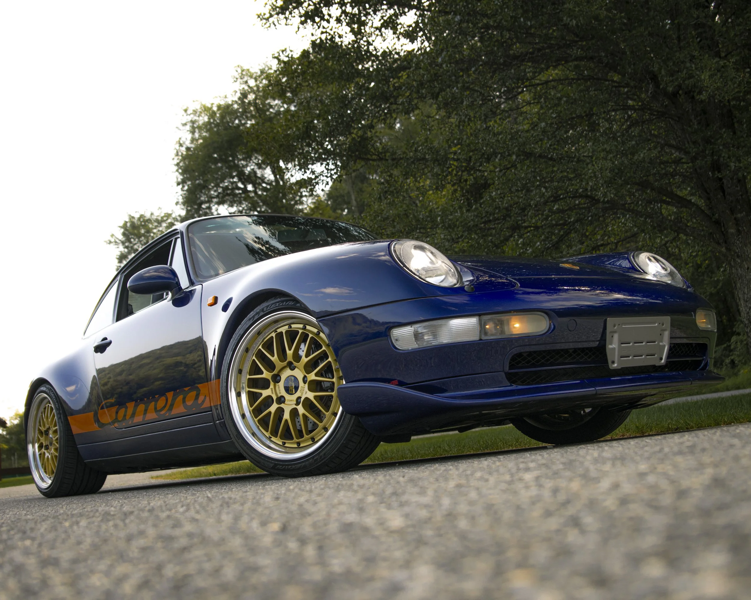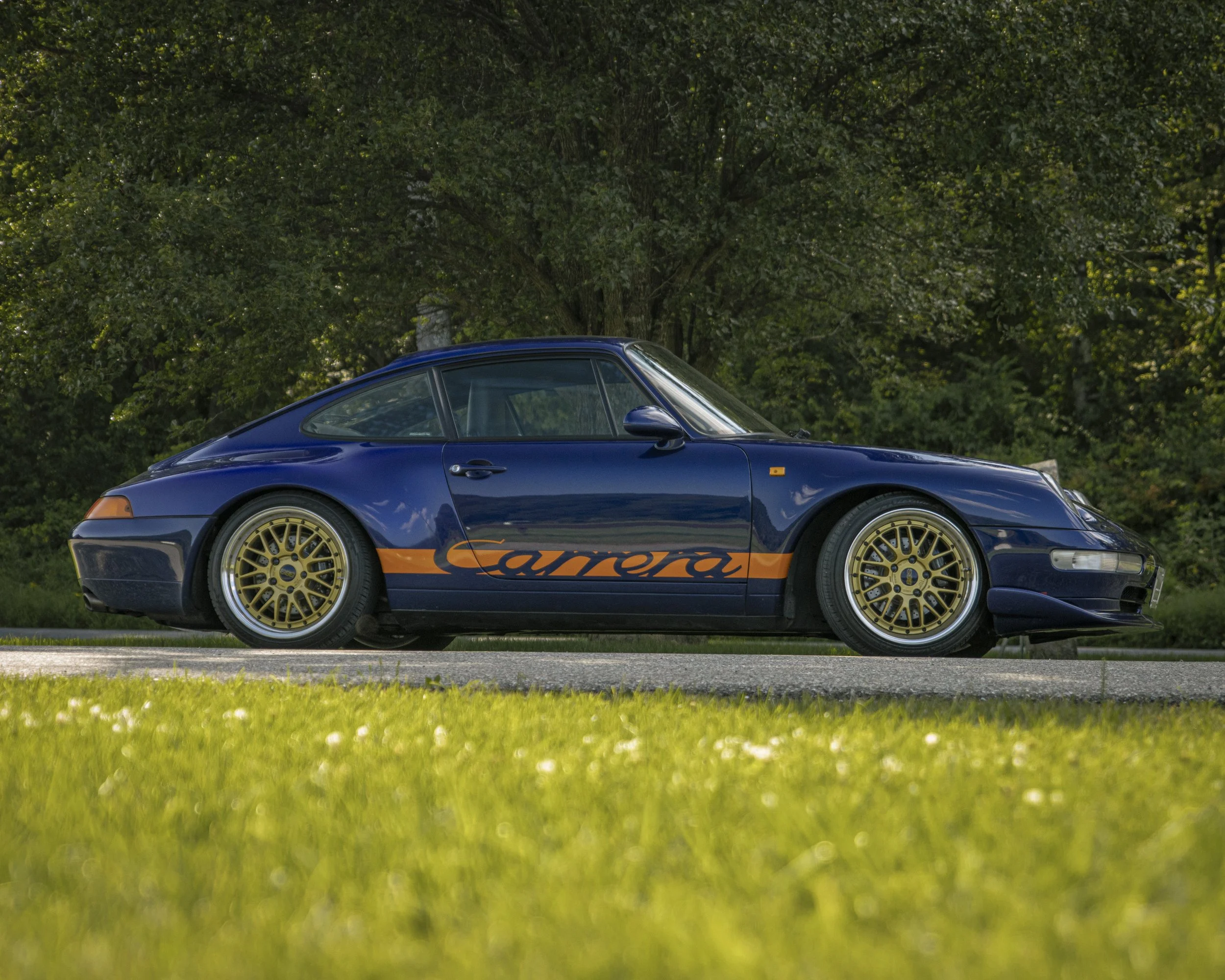 • This 1995 Porsche 911 Carrera 2 represents the final era of Porsche’s air-cooled legacy. Finished in striking Iris Blue Metallic over black leather, this 993 is both a refined driver’s car and a collectible icon. With its wide-body stance, BBS wheels, GT2 front bumper, and H&R lowering springs, it blends classic Porsche design with tasteful upgrades.