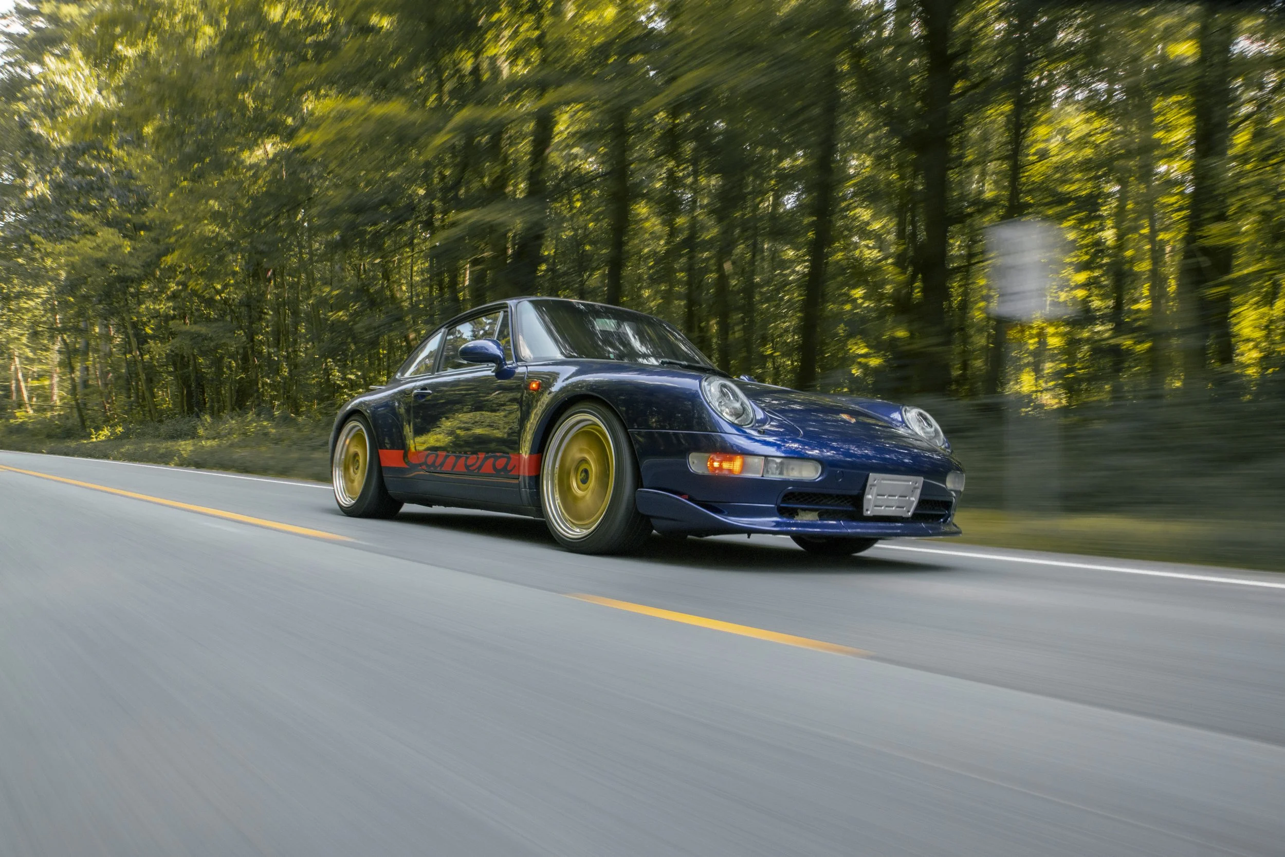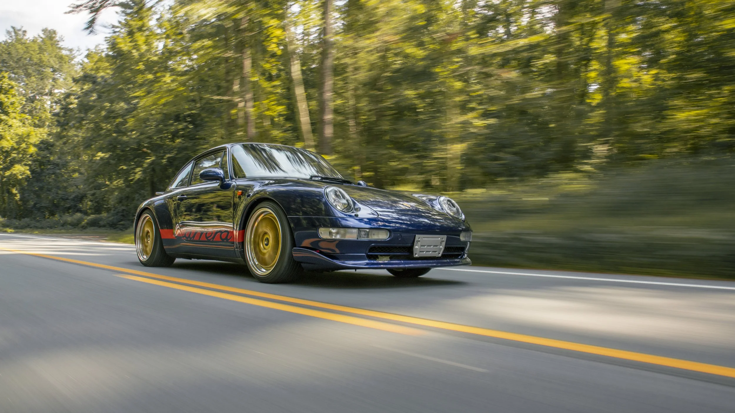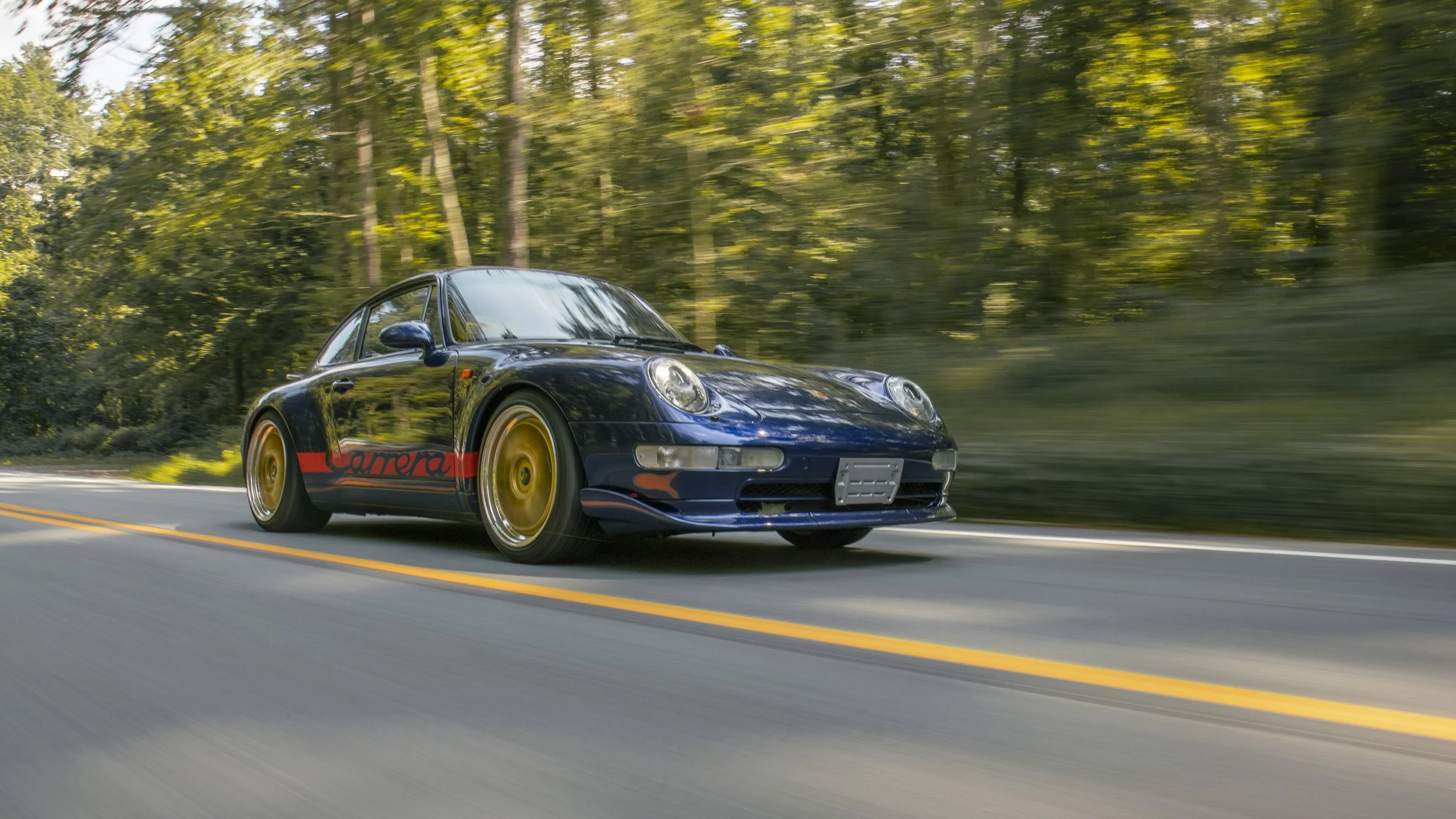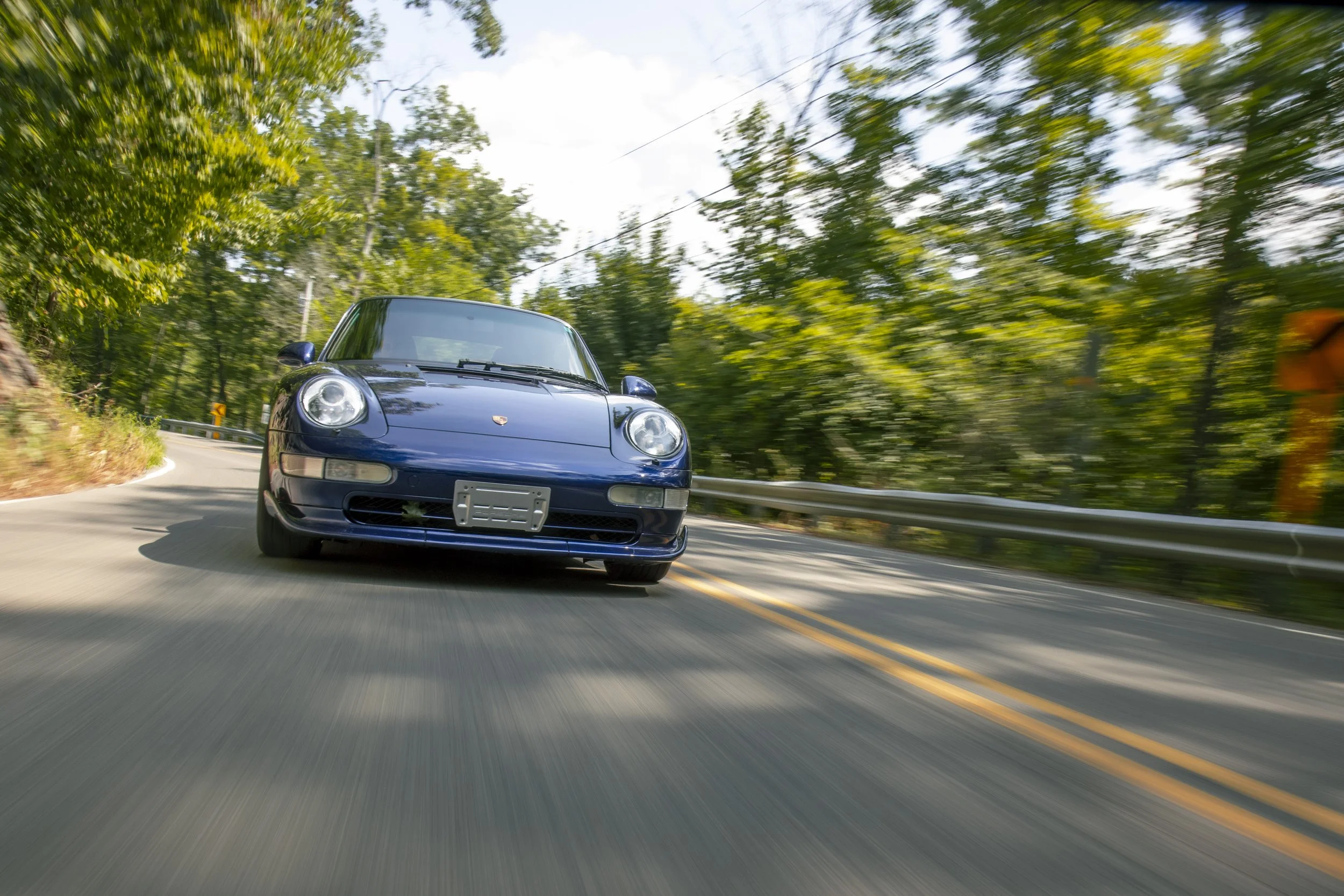 • This 1995 Porsche 911 Carrera 2 represents the final era of Porsche’s air-cooled legacy. Finished in striking Iris Blue Metallic over black leather, this 993 is both a refined driver’s car and a collectible icon. With its wide-body stance, BBS wheels, GT2 front bumper, and H&R lowering springs, it blends classic Porsche design with tasteful upgrades.