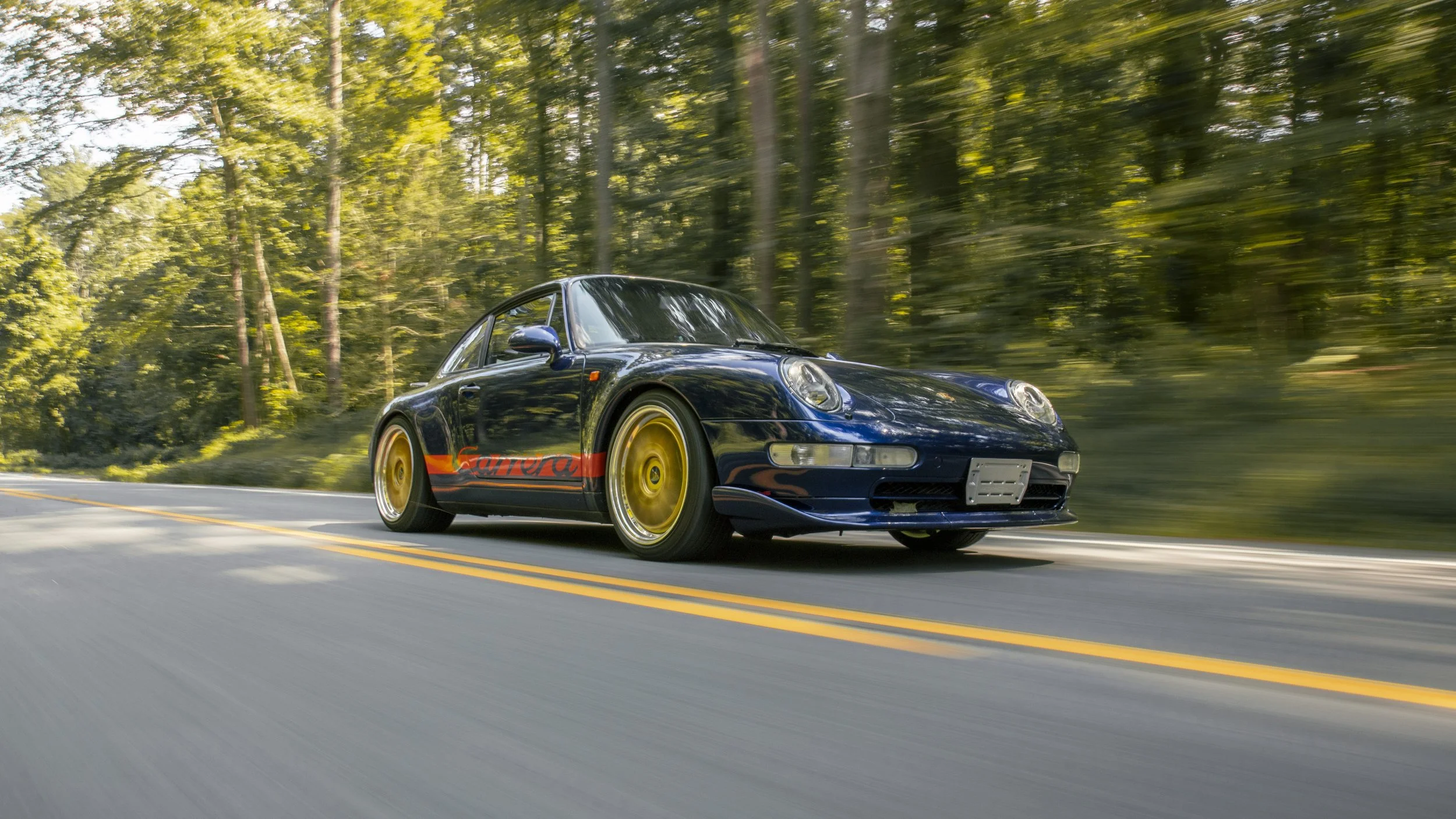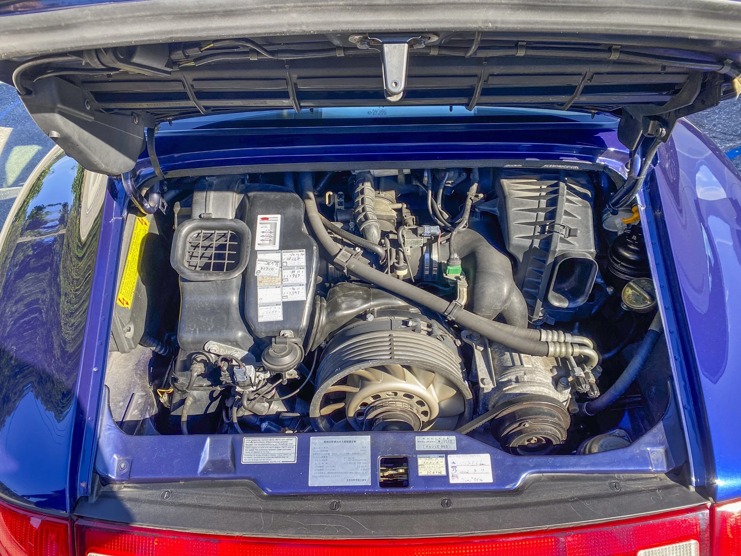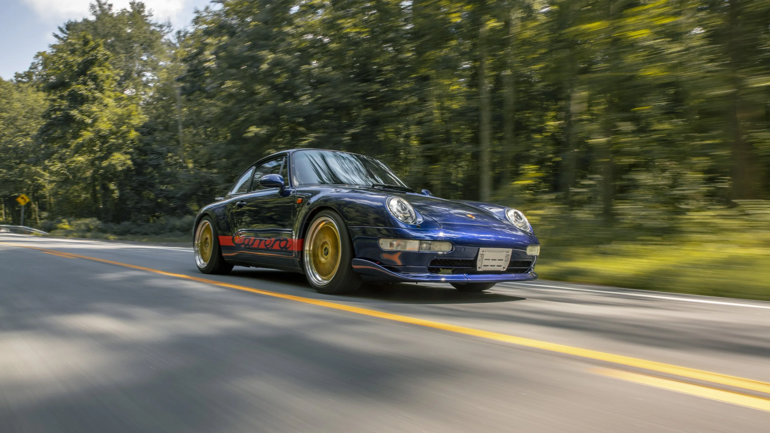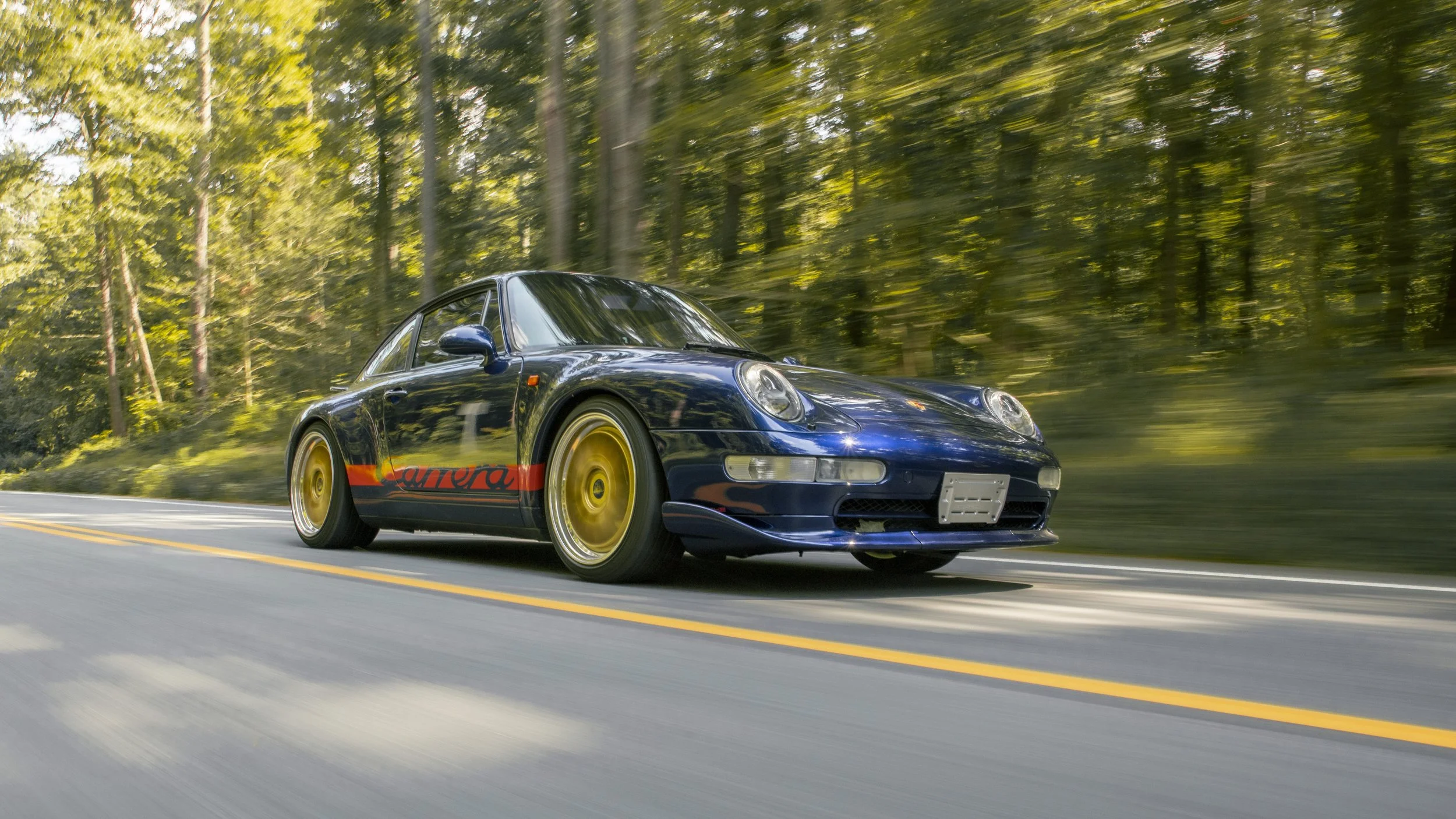• This 1995 Porsche 911 Carrera 2 represents the final era of Porsche’s air-cooled legacy. Finished in striking Iris Blue Metallic over black leather, this 993 is both a refined driver’s car and a collectible icon. With its wide-body stance, BBS wheels, GT2 front bumper, and H&R lowering springs, it blends classic Porsche design with tasteful upgrades.